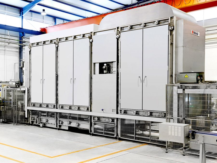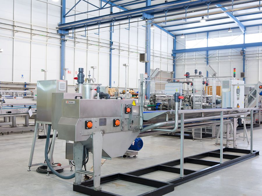 نظام حيث يتلقى المشغلون الأسماك والعلب ويشرعون في تعبئتها.