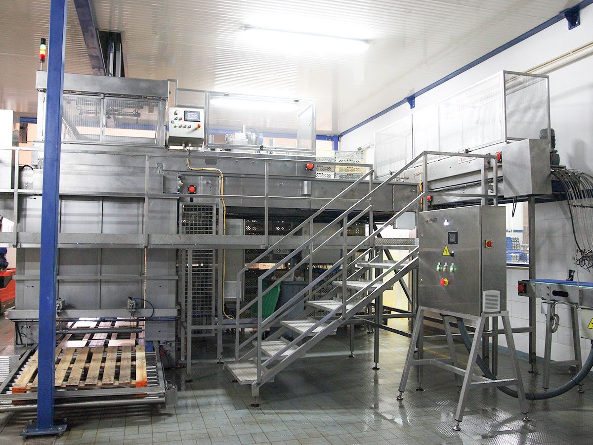 - Automático: Operación realizada por la máquina en su totalidad, con retirada automática de separadores, entrada y salida automática de palets y almacén de palets vacíos.